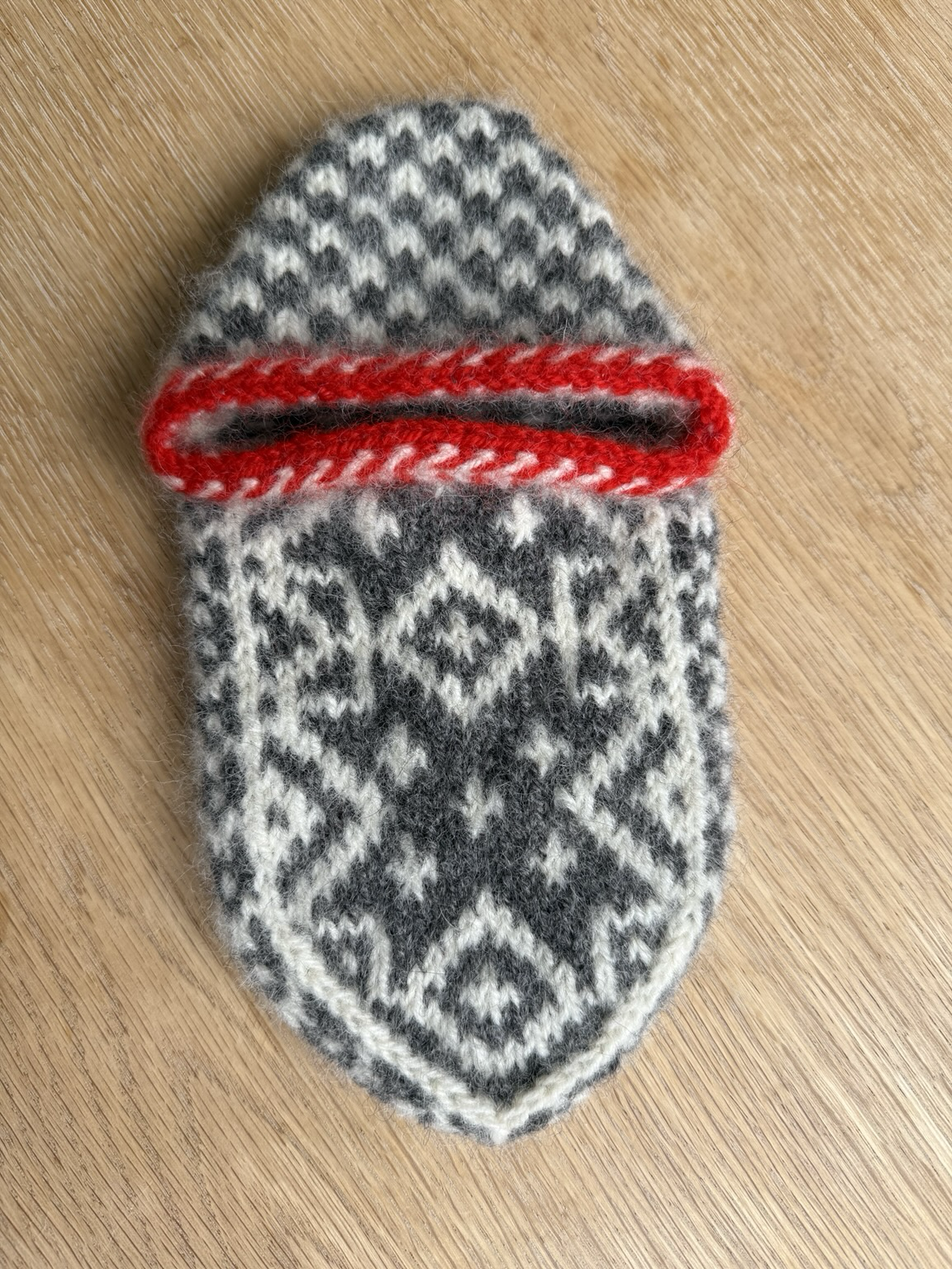 Feeling crap after my flu jab. My achievement of the day is felting the slipper I knitted over the weekend. #knitting